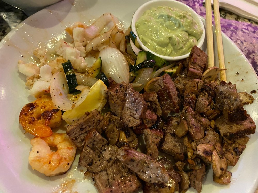 Hibachi steak* and grilled shrimp lightly seasoned and grilled to your specification. Available for 2, 4 or 6! Served with: - House salad- Hibachi vegetables - Homemade dipping sauces- Chicken Fried Rice