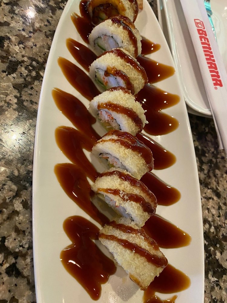Shrimp tempura, avocado, cucumber, krab+, tempura crumbs.